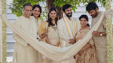 Ram Charan - Upasana Daughters Naming Ceremony : दाक्षिणात्य सुपरस्टार राम चरणच्या घरी लेकीच आगमन झालं आहे. काही दिवसांपूर्वी उपासनाने गोंडस मुलीला जन्म दिला आहे. राम चरण आणि उपासना आई-बाबा झाले आहे.आज त्यांच्या मुलीचा नामकरण सोहळा पार पाडला.