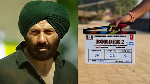 'बॉर्डर 2' चित्रपटाच्या शूटिंगला सुरुवात करण्याची घोषणा करताना निर्मात्यांनी चित्रपटाच्या सेटवरील पहिला फोटो क्लॅपबोर्डसह शेअर केला आहे. फोटोमध्ये क्लॅपबोर्डवर चित्रपटाचे नाव लिहिले आहे आणि सीन, शूट बद्दल माहिती लिहिली आहे. याशिवाय बॅकग्राऊंडला युद्ध रणगाड्याचे दृश्य दिसत आहेत.