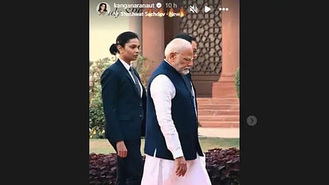 नवी दिल्ली : पंतप्रधान नरेंद्र मोदी यांच्या मागे उभ्या असलेल्या एका महिला कमांडोचे छायाचित्र सध्या सोशल मीडियावर मोठ्या प्रमाणावर व्हायरल होत आहे. अभिनेत्री-खासदार कंगना रणौतन यांनी देखील हे छायाचित्र त्यांच्या इन्स्टाग्रामवर शेअर करत "लेडी एसपीजी" असे म्हटले आहे आणि त्यासोबत आग लावणारे इमोजीही जोडले आहेत. हे छायाचित्र संसदेमध्ये सुरू झालेल्या हिवाळी अधिवेशनादरम्यानचे आहे.