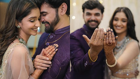 अंबर आणि शिवानीने गुढीपाडव्याचा मुहूर्त साधत, साखरपुडा गुपचूप आटोपला. साखरपुड्यातले अनेक फोटो, व्हिडीओ सध्या सोशल मीडियावर जोरदार व्हायरल होत असून त्यांच्या सेलिब्रिटी मित्रांनी त्यांना सोशल मीडियावरून दोघांना भावी आयुष्याच्या शुभेच्छा दिलेल्या आहेत. नुकतीच शिवानीने साखरपुड्याचे काही फोटो शेअर केले आहेत. दोघेही एंगेजमेंट रिंग दाखवताना दिसत आहेत. (Social Media)