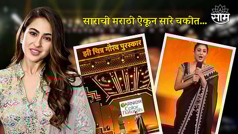 झी चित्र गौरव पुरस्कार सोहळ्यातील सारा अली खानचा व्हिडीओ व्हायरल होत आहे. यावेळी सारा म्हणते की, 'नमस्ते प्रेक्षकहो, मी सारा अली खान. मला इथे येऊन वाटते खूप छान. झी मराठी आहे महाराष्ट्राची शान, काय पाहुणं आला का बाण.' साराच्या या व्हिडीओला चाहत्यांकडून खूप चांगली पसंती मिळत आहे. तिचा हा व्हिडीओ व्हायरल होत आहे.