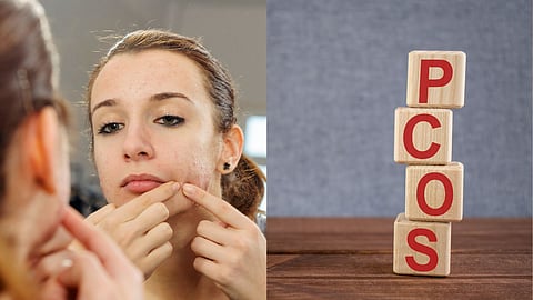 पीसीओएसची अनेक लक्षणे आहेत. यातील काही प्रथम चेहऱ्यावर दिसतात. स्त्रियांमध्ये जेव्हा एंड्रोजन किंवा पुरुष संप्रेरकांचे प्रमाण जास्त असते, तेव्हा त्याची चिन्हे चेहऱ्यावर आढळतात. एंड्रोजनमुळे पीसीओएसशी संबंधित मुरुम होतात.