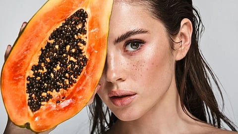 पपईमध्ये असलेले व्हिटॅमिन सी आणि अँटीऑक्सिडंट्स त्वचेला उजळवण्यास, डाग कमी करण्यास आणि सुरकुत्या रोखण्यास मदत करतात. पपईमध्ये असलेले पपेन एन्झाइम त्वचेवरील डेड स्कीन काढून टाकते, ज्यामुळे त्वचा मऊ आणि चमकदार बनते.