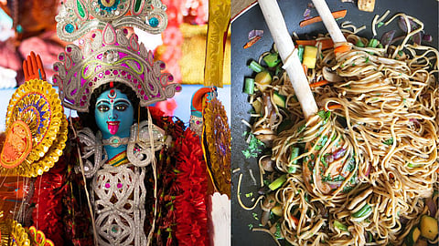 मीडिया रिपोर्ट्सनुसार, पश्चिम बंगालमधील कोलकाता येथील 'चायनीज काली टेम्पल' या नावाने प्रसिद्ध असलेल्या मंदिरात नूडल्स, मोमोजपासून ते भात आणि भाजीपाला (Vegetables) पदार्थांपर्यंत प्रसाद मिळतो. हे मंदिर कोलकात्याच्या माथेश्वरताला रोडवर वसलेले आहे, टांगरा याला 'चायना टाउन' देखील म्हणतात.