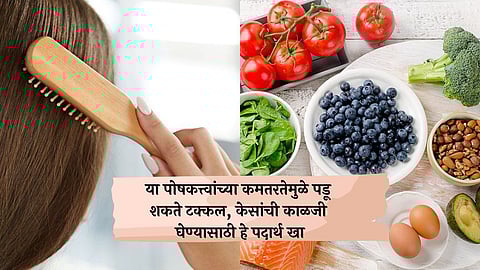 बायोटिन हे केसांसाठी महत्त्वाचे पोषक आहे. यामध्ये व्हिटॅमिन (Vitamins) बी असून याच्या कमरतेमुळे केस कमकुवत होतात आणि तुटायला लागतात. केसांच्या वाढीसाठी ते अधिक आवश्यक आहे. याच्या कमतरतेवर मात करण्यासाठी आहारात बदाम, ट्यूना, सॅल्मन, रताळे इत्यादींचा समावेश करा.