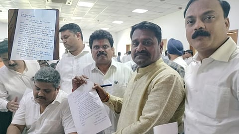 ठाणे लोकसभा मतदारसंघात महायुतीकडून शिवसेना शिंदे गटाचे नेते नरेश म्हस्के (Naresh Mhaske) यांना उमेदवारी देण्यात आली. नरेश म्हस्केंच्या उमेदवारीवरून नवी मुंबईतील भाजपचे पदाधिकारी नाराज झाले आहेत. नरेश म्हस्के यांच्या उमेदवारीला विरोधत करत भाजप पदाधिकाऱ्यांनी राजीनामा देण्यास सुरूवात केली आहे. आमदार गणेश नाईक यांच्या समोर पदाधिकाऱ्यांनी आक्रोश करत सर्वांनी एकत्र येत आपले राजीनामे दिले आहेत.