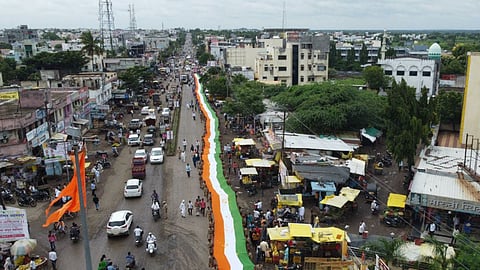 लातूर: स्वातंत्र्याचा अमृत महोत्सवाच्या निमित्ताने नगरपरिषद अहमदपूर व सम्राट मित्र मंडळाच्या वतीने आयोजित केलेल्या 1000 फूट लांबीच्या शौर्याचे व त्यागाचे प्रतीक असलेला तिरंगा ध्वज प्रतिकृतीची तिरंगा रॅलीने लातूर जिल्ह्यातील (Latur District) अहमदपूरकरांचे लक्ष वेधून घेतले. (Amrit Mahotsav of Freedom)