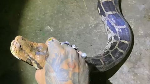 त्यानंतर सर्पमित्र योगेंद्र वीरकर हे अन्य सर्पमित्रांसमवेत घटनास्थळी पाेहचले. त्यांनी अजगरास काैशल्यानं पकडलं. त्यानंतर पेण खोपोली रस्त्यावरील जंगल परिसरात अजगरास सोडून दिलं.
