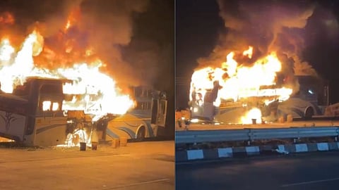 घटनेची माहिती मिळताच काही वेळात पोलीस, अग्निशमन दलाचं जवान घटनस्थळी दाखल झाले. काही वेळात अग्नीशमन दलाच्या जवानांनी बसला लागलेली आग विझवली. मात्र बस जवळपास पूर्ण जळून खाक झाली आहे. या घटनेमुळे महामार्गावर काही काळ वाहतुकीचा वेग मंदावला होता.