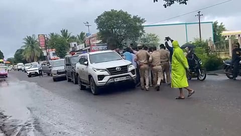 नगर : नगर (nagar) जिल्ह्यातील अकोले येथे विराेधी पक्ष नेते अजित पवार (ajit pawar) यांच्या वाहनाचा शेतक-यांनी (farmers) आणि भाजपा (bjp) कार्यकर्त्यांनी ताफा अडवला. यावेळी शेतकरी नेते दशरथ सावंत यांना अटक केल्याचा निषेध आंदाेलकांनी विराेधी पक्ष नेत्यांकडे नाेंदविला. (ajit pawar latest marathi news)