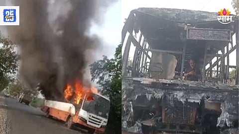 अकोल्यामध्ये धावत्या एसटी बसने अचानक पेट घेतल्याची घटना घडली. अकोल्यातल्या अकोट पोपटखेड रस्त्यावर ही घटना घडली. आगीमध्ये बस जळून खाक झाली. या बसमधून २० प्रवासी प्रवास करत होते. बसला आग लागल्यामुळे प्रवासी प्रचंड घाबरले. चालकाच्या सतर्कतेमुळे सर्व प्रवाशांचे प्राण वाचले. या घटनेचा व्हिडीओ सोशल मीडियावर व्हायरल होत आहे.