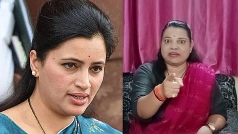 अमरावती - शहरातील राजापेठ पोलीस ठाण्यात लव्ह जिहाद झाल्याचा आरोप करत अमरावतीच्या खासदार नवनीत राणा (Navneet Rana) यांनी पोलिसांसोबत हुज्जत घालत पोलिसांशी जोरदार बाचाबाची करून राडा घातलेला होता, त्यानंतर अमरावतीत पोलीस कुटुंब चांगलेच आक्रमक झाले आहे, शिवसेना (Shivsena) पदाधिकारी व पोलीस पत्नी वर्षा भोयर यांचा एक बाईट सोशल मीडियावर जोरदार व्हायरल होतो आहे. यात त्यांनी नवनीत राणा यांना सणसणीत इशारा देत माफी मागण्यच आव्हान केलं आहे.