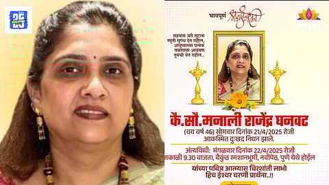 माजी मंत्री धनंजय मुंडे यांचे निकटवर्तीय म्हणून ओळखले जाणारे उद्योजक राज घनवट यांच्या पत्नी मनाली घनवट यांचा आकस्मिक मृत्यू झाला आहे. पुण्यातील जुपिटर रूग्णालयात त्यांना पहाटेच्या सुमारास दाखल करण्यात आले होते. मात्र, त्यांची प्राणज्योत मालवली. हा मृत्यू नेमका कशामुळे झाला? हे अद्याप स्पष्ट झालेले नाही.