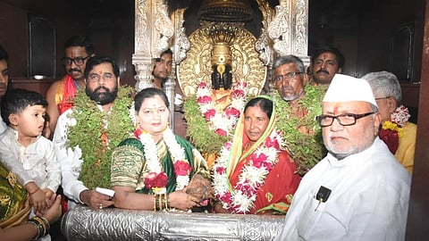 पंढरपूर: आषाढी एकादशीनिमित्त पंढरपुरात (Pandharpur) विठ्ठल-रुक्मिणी यांची शासकीय महापूजा मुख्यमंत्री एकनाथ शिंदे (Eknath Shinde) आणि त्यांच्या पत्नी लता शिंदे यांच्या हस्ते संपन्न झाली. त्यांच्यासोबत वारकरी प्रतिनिधी म्हणून बीड जिल्ह्यातील रुई गावच्या मुरली भगवान नवले या वारकरी दाम्पत्याला मुख्यमंत्र्यांसोबत शासकीय महापूजा करण्याचा मान मिळाला. ( Ashadhi Ekadashi 2022 News In Marathi)