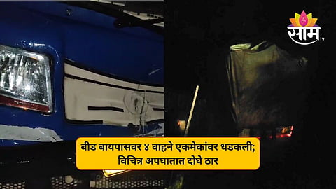 बीड बायपासवर ४ वाहने एकमेकांवर आदळून झालेल्या विचित्र अपघातात दोनजण जागीच ठार तर ५ जण गंभीर जखमी झाले. हा अपघात सोमवारी (ता. ८) रात्रीच्या सुमारास घडला आहे. छोटा हत्ती, रिक्षा, दुचाकी अन् कंटेनर ही वाहने एकमेकांवर धडकल्याने हा अपघात झाला. जखमींवर जिल्हा रुग्णालयात उपचार सुरू आहेत.
