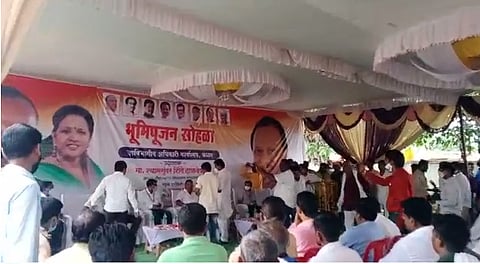 नांदेड जिल्ह्य़ातील (Nanded District) कंधारमध्ये शासकीय कार्यक्रमात भाजपच्या (BJP) कार्यकर्त्यांनी गोंधळ घातला. भाजपच्या आमदाराला (MLA) कार्यक्रमाला का बोलावलं नाही म्हणून गोंधळ घालत भाजपा कार्यकर्त्यांनी निषेध व्यक्त केला. या गोंधळाचा व्हिडिओ आता सोशियल मिडीयावर प्रचंड व्हायरल झाला आहे. कंधार येथे उपविभागीय कार्यालय बांधकामाच्या शासकीय भुमिपुजन कार्यक्रमास कंधार लोहाचे आमदार श्यामसुंदर शिंदे यांना बोलावले मात्र, मुखेडचे भाजपचे आमदार तुषार राठोड यांना का निमंत्रण दिलं नाही आणि इतर पदाधिकाऱ्यांना का बोलावलं नाही म्हणून भाजपच्या कार्यकर्त्यांनी भुमिपुजन कार्यक्रमात गोंधळ घालत निषेधाच्या घोषणा दिल्या.
