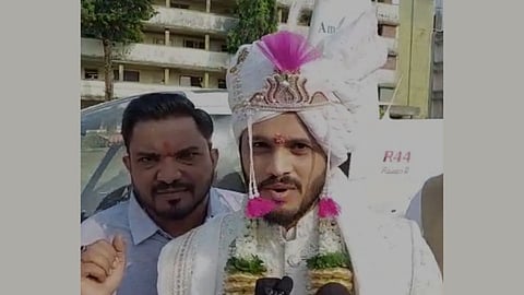 मीरा- भाईंदर : हौस म्हटलं की माणूस काय करेल यांचा नेम नाही असंच काहीसं चित्र भाईंदर मध्ये पाहायला मिळाले. लग्न सोहळ्यासाठी चक्क नवरदेव हेलिकॉप्टरने डोंबिवलीकडे रवाना झाला आहे, यावेळी हेलिकॉप्टर पाहण्यासाठी लहान मुलांसह अनेक नागरिकांनी गर्दी केली. भाईंदर पूर्वेच्या गोडदेव गावामधील म्हात्रे कुटुंबातील रोशन म्हात्रे यांचे लग्न सोहळा डोंबिवली येथे संपन्न होणार आहे. याठिकाणी नवरदेव रोशन म्हात्रे हे खाजगी हेलिकॉप्टरमधून डोंबिवलीकडे रवाना झाले आहे.