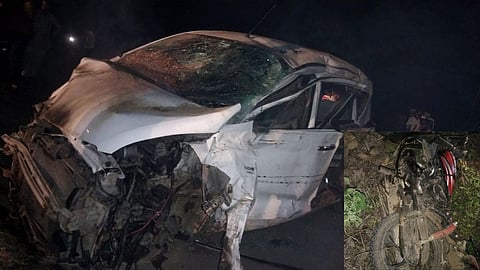 Buldhana Accident News: बुलढाणा जिल्ह्यातून भीषण अपघाताची घटना समोर आली आहे. बुलढाण्यातील खामगाव-मेहकर मार्गावर एक भयानक अपघात झाला. भरधाव वेगात येणाऱ्या दुचाकीने समोरून येणाऱ्या एका कारला जोरदार धडक दिली. त्यानंतर बाईक दुसऱ्या एका कारवर जाऊन आदळली.