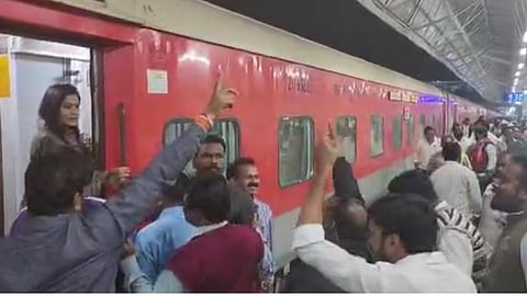 काल अकोला रेल्वे स्थानकावर शिवसेनेच्या शिंदे गटाच्या खासदार भावना गवळी आणि ठाकरे गटाचे खासदार विनायक राऊत आमने-सामने आले आहेत. ठाकरे गटाच्या कार्यकर्त्यांची भावना गवळींसमोर 'गद्दार-गद्दार' अशी घोषणाबाजी केली आहे. भावना गवळी डब्याच्या बाहेर आल्यानंतरही ठाकरे गटाच्या कार्यकर्त्यांची प्रचंड घोषणाबाजी केली. घोषणाबाजीच्या वेळी आमदार नितीन देशमुखही उपस्थित होते. खासदार गवळी बसलेल्या डब्याच्या खिडकीच्या काचावर ठाकरे गटाच्या कार्यकर्त्यांनी बुक्क्या देखील मारल्या.