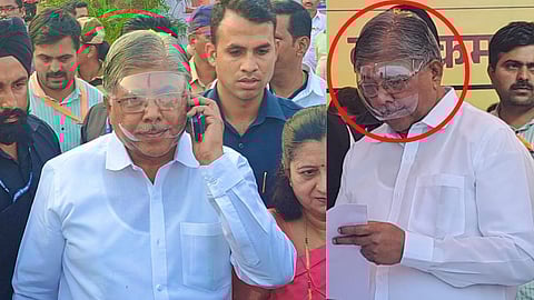 Chandrakant Patil Today News : राज्याचे उच्च व तंत्रशिक्षण मंत्री चंद्रकांत पाटील यांच्यावर पुण्यात शाई फेकण्यात आली होती. त्यानंतर चंद्रकांतदादांनी शाई हल्ल्याचा धसकाच घेतल्याचं दिसतंय. याचं कारण म्हणजे, आज पिंपरी चिंचवडच्या सांगवी येथील एका कार्यक्रमात चंद्रकांतदादांनी आपला चेहरा चक्क फेसशिल्डने कव्हर केल्याचं पाहायलं मिळालं. आपल्यावर पुन्हा शाई हल्ला झाल्यास त्यातून चेहऱ्यावर शाई पडू नये यासाठी चंंद्रकांत पाटील यांनी पूर्ण खबरदारी घेतली होती. त्यांनी फेसशिल्ड घातल्याचे फोटोज सोशल मीडियावर व्हायरल झाल्यानंतर त्यावर आता वेगवेगळ्या प्रतिक्रिया येत आहेत. (Maharashtra News)