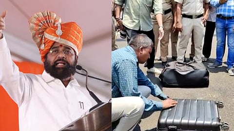 नाशिक : मुख्यमंत्री एकनाथ शिंदे यांचा महायुतीचे उमेदवार हेमंत गोडसे यांच्या प्रचारार्थ रोड शो होणार आहे. या रोड शोसाठी मुख्यमंत्री शिंदे हे हेलिकॉप्टरने नाशिकमध्ये उतरले. नाशिकमध्ये मुख्यमंत्री शिंदे यांचं हेलिकॉप्टर हेलिपॅडवर लँडिंग झाल्यानंतर निवडणूक आयोगाच्या अधिकाऱ्यांनी त्यांच्या २ बॅगांची तपासणी केली. काही दिवसांपूर्वी संजय राऊत यांनी शिंदेंनी बॅगांमधून पैसे आणल्याचा आरोप केला होता.