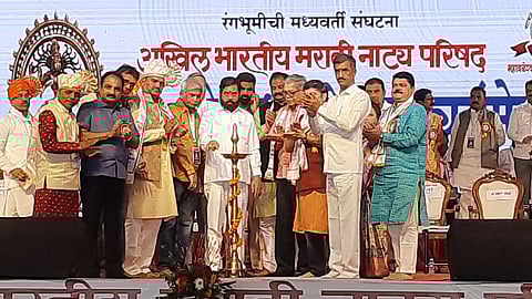 रंगभूमी मध्यवर्ती संघटना अखिल भारतीय मराठी नाट्य परिषदचे शंभरावे विभागीय नाट्य संमेलन महाबळेश्वर येथे छत्रपती शिवाजी महाराज नाट्य नगरी या ठिकाणी संपन्न होत आहे. या नाट्य संमेलनाचे (Natya Sammelan 2024) उद्घाटन आज (शनिवार) मुख्यमंत्री एकनाथ शिंदे यांच्या हस्ते झाले. त्यावेळी ते बाेलत हाेते.
