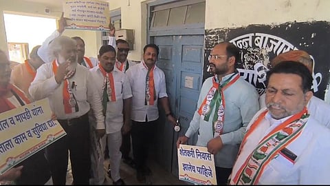 काँग्रेस कार्यकर्ते कृषी उत्पन्न बाजार समिती कार्यालयात टाळे ठोकत असतानाच बाजार समितीचे सभापती राजेंद्र पाटील आणि काँग्रेस कार्यकर्त्यांत जोरदार हमरी तुमरी झाली. (Maharashtra News)