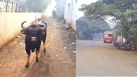 सांगली : राज्यात कोरोना आणि ओमिक्रॉन (Corona and Omicron) या रोगाने अनेक जिल्ह्यात जमावबंदीचे विचार सुरू आहेत. पण सांगली शहरात ओमिक्रॉन नव्हे तर गव्या रेड्यामुळे जमावबंदी लागू करण्यात आली आहे. गव्याला पकडण्यासाठी पुण्याची रेस्क्यू टीम दाखल झाली आहे. मात्र या गव्यामुळे नागरिकाच्यात भीतीचे वातावरण पसरले आहे. गेली तीन दिवस सांगलीच्या सीमेवर घुटमळणारा गवा मध्यरात्री सांगली शहरात दाखल झाला आहे. सांगली शहरातील प्रमुख मार्गावरून गवा रेड्याने मार्गक्रम करीत सकाळच्या सुमारास मार्केट यार्ड गाठले. शहरात मध्यरात्री असणाऱ्या निरव शांततेमुळे गवा न भुजता दिसेल त्या मार्गाने पुढे जात होता. दोन दिवसांपूर्वी सांगली वाडीत दिसलेला गवा आज मध्यरात्रीच्या सुमारास अचानकपणे सांगली (Sangli) शहरात दाखल झाला आहे. (curfew in Sangli due to gaur terror)