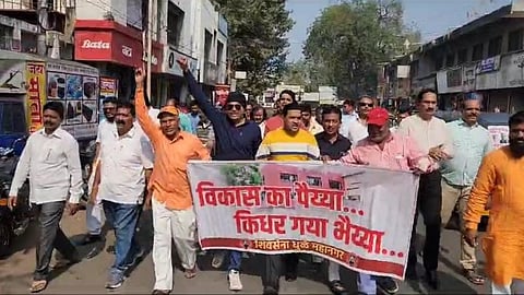 पुढील दोन दिवसांमध्ये धुळे महानगरपालिकेच्या (Dhule Corporation) नगरसेवकांचा पाच वर्षांचा कार्यकाळ संपत आहे. या पाच वर्षांमध्ये सत्ताधाऱ्यांतर्फे धुळेकरांना देण्यात आलेल्या आश्वासनांची पूर्तता त्यांनी केली नाही. यामुळे उद्धव बाळासाहेब ठाकरे शिवसेनेच्या (Shiv Sena) पदाधिकारी व कार्यकर्त्यांतर्फे शिवसेना कार्यालयापासून धुळे महानगरपालिकेवर निषेध मोर्चा काढला. यावेळी ठाकरे गट शिवसैनिकांनी सत्ताधारी भाजप पदाधिकाऱ्यांच्या विरोधात घोषणाबाजी करत, सत्ताधाऱ्यांनी धुळेकरांची फसवणूक केली असल्याचा आरोप लावला आहे,