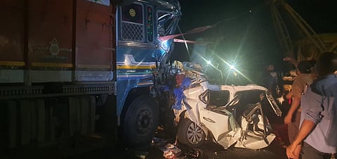सदर अपघातात कार पूर्णतः चेपली गेली. कारमधील तीन जण ठार झाले असून एक गंभीर जखमी आहे. मृत व जखमी पुरुष आहेत. कारच्या नंबर प्लेटचा भुगा झाल्याने कार व प्रवाशांविषयी माहिती अद्याप मिळू शकलेली नाही.