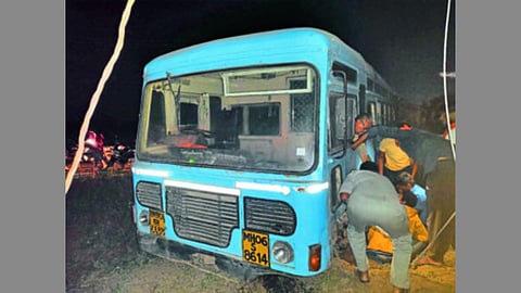 दोंडाईचा बसस्थानकातून ३५ प्रवासी घेऊन वाडीमार्गे लामकानी येथे मुक्काम जात होती. या बसवर संजय बुधा कोळी हे चालक होते. बस (Bus Accident) सायंकाळी सहाला बसस्थानकातून निघाली होती. शहरातील मांडळ चौफुलीपासून एक किलोमीटर अंतरावर पोहचली असता (Accident) अचानक डाव्या बाजूकडील पुढचे टायर फुटल्याने बस रस्त्यावरून खाली उतरली. पाच फूट अंतरावरच विजेचा खांब होता. सुदैवाने बस थांबल्याने मोठी दुर्घटना टळली.