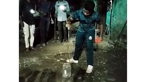 धुळे : रात्रीची वेळ असताना घराच्या भिंतीवर मण्यार जातीचा विषारी सर्प निदर्शनास आला. सापाला पाहून सर्वांच्या अंगाचा थरकाप उडाला अन् सारेजण बाहेर अंगणात आले. अशात सर्पमित्राने भिंत खोदून सापाला मोठ्या शिताफीने पकडले. यानंतर सर्वांच्या जीवात जीव आला. (dhule-news-Manyar-snake-on-the-wall-of-the-house-everyone-came-in-the-yard)