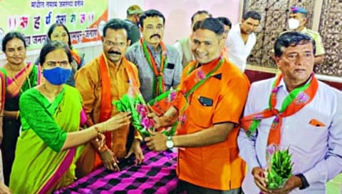 निजामपूर (धुळे) : केंद्रीय आरोग्य व कुटुंबकल्याण राज्यमंत्री डॉ. भारती पवार यांच्या जनआशीर्वाद यात्रेनिमित्त येथील वाणी मंगल कार्यालयात झालेल्या कार्यक्रमात शिवसेनेचे साक्री तालुका उपप्रमुख त्रिलोक दवे व निजामपूर शहरप्रमुख भय्या गुरव व शिवसैनिकांनी भारतीय जनता पक्षात प्रवेश केला. जिल्हा उपप्रमुखांच्या गावातच शिवसेनेला खिंडार पडल्याने आश्चर्य व्यक्त होत आहे. (dhule-news-Shiv-Sena-leader-BJP-entry-in-mp-bharati-pawar-programe)