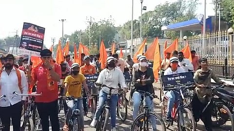 धुळे : पेट्रोल डिझेल भाव वाढ संदर्भात केंद्र सरकारचा निषेध करण्यासाठी युवासेनेच्यावतीने धुळ्यात सायकल रॅली काढण्यात आली. यावेळी युवासेनेने इंधन दरवाढीचा निषेध करत केंद्र सरकारविरोधात घोषणाबाजी केली. (dhule-news-Yuvasena-cycle-rally-Central-government's-protest-against-petrol-and-diesel-price-hike)