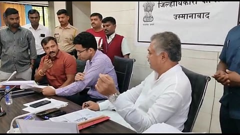 आज जिल्हाधिकारी कार्यालयात आज पीकविमा संदर्भात बैठक हाेती. ही बैठक घेण्यासाठी शेतकऱ्यांनी गोंधळ घालायला सुरुवात केली. दरम्यान भाजपा आमदार राणाजगजिसिंह पाटील हे इथे हजर होते.