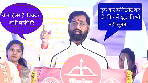 Eknath Shinde in Daryapur : ये तो ट्रेलर है, पिक्चर अभी बाकी है...एक बार कमिटमेंट कर दी, तो फिर मैं खुद की भी नहीं सुनता... दर्यापूर मतदारसंघाच्या सभेत मुख्यमंत्री एकनाथ शिंदे यांनी हिंदी चित्रपटांतील डायलॉगनं विरोधकांवर जोरदार निशाणा साधला. लाडक्या बहिणींना मी एवढंच सांगतो, लाडकी बहीण योजना विरोधकांच्या पोटात दुखत आहे. सावत्र आणि दृष्ट भाऊंपासून तुम्हाला सावध राहायचं आहे, असं सांगतानाच शिंदे यांनी महाविकास आघाडीला जोरदार टोला लगावला.