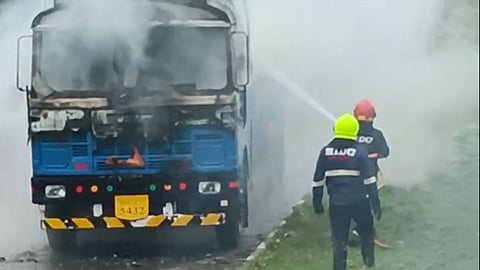 त्यानंतर क्षणार्धात पूर्ण केबीननं पेट घेतला. त्यामुळे संपूर्ण परिसरात काही काळ भीतीचे वातावरण निर्माण झाले हाेते. यावेळी पूलावर आग लागलेला टॅंकर पाहण्यासाठी तुफान गर्दी झाली हाेती. या घटनेची माहिती अग्निशमन दलास मिळाल्यानंतर दलाने घटनास्थळी धाव घेतली. यावेळी अग्निशमन दलाच्या कर्मचा-यांनी आग आटाेक्यात आणली. या टॅंकरची केबीनची राख रांगाेळी झाली हाेती.