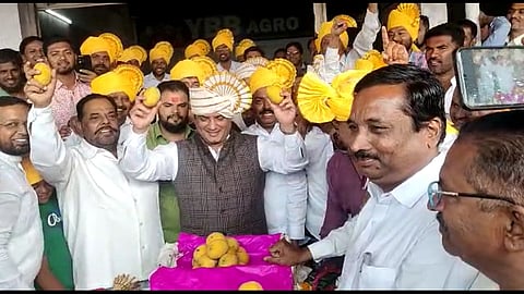 यंदाच्या हंगामातील पहिला आंबा कोल्हापूरच्या कृषी उत्पन्न बाजार समितीमध्ये दाखल झाला याचा लिलाव आज सकाळी खासदार धनंजय महाडिक यांच्या उपस्थितीत पार पडला 5000 रुपयापासून सुरू झालेला दर हा तब्बल 51 हजार रुपयापर्यंत पोहोचला. सदर लिलावात खासदार धनंजय महाडिक यांनी देखील बोली लावत तब्बल 51 हजार रुपयाला आंबा खरेदी केला.