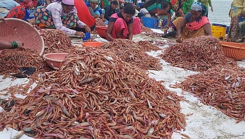 पावसाळ्यात कोळंबीची पिल्ले तयार झाली असल्याने सध्या या पिल्लाची वाढ होत आहे. त्यामुळे मच्छीमार हा मासेमारीसाठी गेल्यानंतर त्याच्या जाळ्यात ही छोटी कोळंबी मिळत आहे. कोळंबी छोटी मिळत असल्याने आणि निर्यात बंद असल्याने मच्छीमारांना दर मिळत नसल्याने ते आर्थिक अडचणीत सापडले आहेत. कोळंबी खाणाऱ्या खवय्यांची दर कमी झाल्याने चंगळ झाली आहे.
