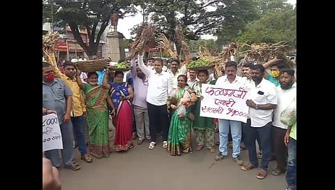 सांगली : सांगली मधील पूरग्रस्तांना आणि शेतकऱ्यांना अद्याप कोणतीही मदत मिळाली नाही यासाठी पूरग्रस्त आणि शेतकऱ्यांनी काँग्रेस भवनावरती भव्य मोर्चा काढला आहे. यावेळी पुरात नुकसान झालेले ऊस सोयाबीन आणि भाजीपाला हातात घेऊन हा मोर्चा काढण्यात आला. Flood victims in Sangli march on Congress building