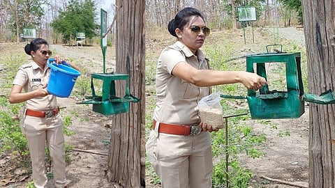 यवतमाळ : सध्या कडक उन्हाळा सुरू आहे. अशात जंगलात वन्यप्राण्यांना पाण्यासाठी भटकंती करावी लागते. पशु-पक्ष्यांची गैरसोय होऊ नये म्हणून स्वतःच्या पदरातील पैसा खर्च करून वन्यजीव पशु-पक्षी, प्राणी आणि तक्षम वन्य जीवांची पोटाची खळगी भरण्यासाठी ऑन ड्यूटी झटणारी वन वाघीण सावळी वनक्षेत्र अंतर्गत येणाऱ्या कुऱ्हा येथील बीटच्या वनरक्षक (Forester) चर्चेचा विषय बनली आहे. या वन विभागातील वाघीणीचे नाव स्वाती अघम (Swati Agham) असे आहे. अंत्यत घनदाट जंगलात अंगावर वनविभागाची खाकी वर्दी चढवून लाकूड तोडणाऱ्यासह अन्य चोरट्यांना घाम फोडणारी वनरक्षक म्हणून स्वाती अघम यांची जिल्ह्यात चर्चा आहे. (Forest Guard Swati Nigam is doing help to birds in yavatmal jungles)