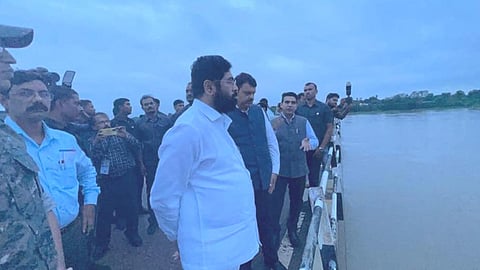 गडचिरोली जिल्ह्यातील पूरपरिस्थितीची पाहणी करण्यासाठी आज मुख्यमंत्री एकनाथ शिंदे आणि उपमुख्यमंत्री देवेंद्र फडणवीस हे आज गडचिरोली दौऱ्यावर आहेत. मुख्यमंत्री एकनाथ शिंदे आणि उपमुख्यमंत्री देवेंद्र फडणवीस यांनी नागपूर ते गडचिरोली (Gadchiroli) हा प्रवास रस्तामार्गे केला. यात गडचिरोलीच्या सीमेवरील वैनगंगा आणि गडचिरोलीलगत असलेल्या कठाणी नदीच्या पुलावरून त्यांनी पुराची पाहणी केली. पुलावर उतरून त्यांनी अधिकाऱ्यांकडून नद्यांच्या पुराबाबतची माहिती घेतली. वाटेत पुराची स्थिती असलेल्या गावांची या दौऱ्यात त्यांनी पाहणी केली.