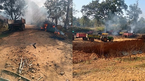 गडचिरोली : गडचिरोली जिल्ह्यातील विकास कामांना नक्षल्यांचा असणारा विरोध स्पष्टपणे पुढे आलाय. रस्ते बांधकामावर असलेल्या 11 वाहनांची नक्षल्यांकडून जाळपोळ करण्यात आली आहे. यात 9 ट्रॅक्टर, 2 जेसीबीचा समावेश आहे. भामरागड (Bhamragad) तालुक्यातील इरपनार गावाजवळ दुपारी ही घटना घडली.