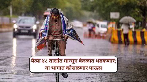 मौसमी वाऱ्याची आतुरतेने वाट पाहत असलेल्या शेतकऱ्यांसाठी आनंदाची बातमी आहे. अंदमान-निकोबारमध्ये दाखल झालेला मान्सून आता हळूहळू पुढे सरकरत आहे. लवकरच मान्सून केरळमध्ये दाखल होण्याचा अंदाज आहे. हवामान खात्याच्या माहितीनुसार येत्या ४८ तासांत मान्सून केरळात धडकण्याची शक्यता आहे. यापार्श्वभूमीवर राज्यातील काही जिल्ह्यांना पावसाचा इशारा देण्यात आला आहे.