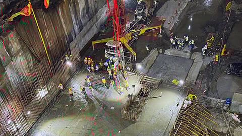 या स्टेशनसाठी टाकल्या जाणाऱ्या ६९ स्लॅबपैकी हा पहिला आहे, जो बुलेट ट्रेन स्टेशनचा सर्वात खालचा भाग आहे. भूमिगत स्टेशनचे बांधकाम तळापासून वरच्या पद्धतीने केले जात आहे, त्यामुळे स्टेशनचा बेस बनवण्याचे काम सुरु झाले असून काँक्रिटीकरण करण्यात येत आहे.