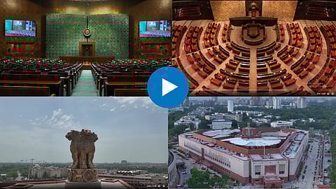 या व्हिडिओची सुरुवात संसदेच्या शिखरावर बसवण्यात आलेल्या अशोक स्तंभापासून होते. यानंतर सत्यमेव जयते अंकित भवन दाखवले आहे. व्हिडिओमध्ये संसदेनंतर इमारतीचे हवाई दृश्य दिसते. यासोबतच जुने संसद भवनही दिसते.