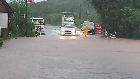 सातारा - दोन दिवसांपासून महाबळेश्वर शहर व परिसरात मुसळधार पाऊस कोसळत आहे. मंगळवार पर्यंत या परिसरात २२९४.० मि.मी ( ९० इंच ) पावसाची नोंद झाली होती. मुसळधार पावसाने महाबळेश्वर पांचगणी मुख्य रस्त्यावर पाणी आल्याने वाहतूक मंदावली होती. तर काही काळ वाहतूक थांबवायला देखील लागली.