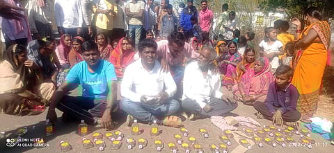 हिंगोली : जिल्ह्यातील पोत्रा गावात महिला रणरागिणींनी दारू विक्रेत्याला मुद्देमालासह जेरबंद केले. पोलिसांच्या विरोधात संताप व्यक्त करत पकडलेल्या दारूचे रस्त्यावरच प्रदर्शन भरवले. (hingoli news women arrested for selling liquor Block the road against the police)