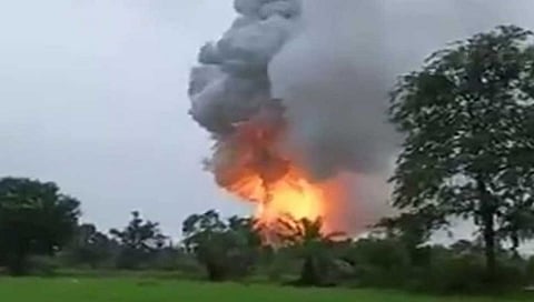 पालघर : पालघर Palghar जिल्ह्यामधील डहाणू Dahanu तालुक्यात एका फटाका कंपनीत भीषण स्फोट explosion झाल्याची घटना घडली आहे. स्फोट झाल्यानंतर भीषण आग Fire लागली आहे. या भीषण स्फोटामुळे डहाणू तालुक्यात एकच खळबळ उडाली आहे. अग्निशमन दलाच्या गाड्या घटनास्थळी दाखल झाल्या आहेत. A huge explosion at a firecracker company in Palghar