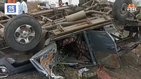 जळगाव : जळगाव जिल्ह्यातील जामनेर तालुक्यातील रामपूर तांडा लहासर येथून विवाह सोहळा आटोपून क्रूझरने घराकडे परतत असताना जामनेर-पहर मार्गावर सोनाळा फाट्याजवळ एक भीषण अपघात झालाय. समोरून भरधाव येणाऱ्या आयशर कंटेनरने जोरदार धडक दिल्याने अपघात होऊन क्रूझर उलटली. या भीषण दुर्घटनेत नवरदेवाचे काका दशरथ रतन चव्हाण हे जागीच ठार झाले. तर अन्य नऊ वऱ्हाडी जखमी झाले आहेत. घटनेची माहिती मिळताच आजूबाजूच्या लोकांसह वहऱ्हाडातीलच अन्य वाहनांमधील नातेवाइकांनी जखमींना पहूर ग्रामीण रुग्णालयात दाखल केलं. पोलिसांनी घटनास्थळी धाव घेऊन कंटेनरसह चालकास ताब्यात घेतलं. या प्रकरणी पहर पोलीस ठाण्यात गुन्हा नोंदविण्याचे काम उशिरापर्यंत सुरू होते.